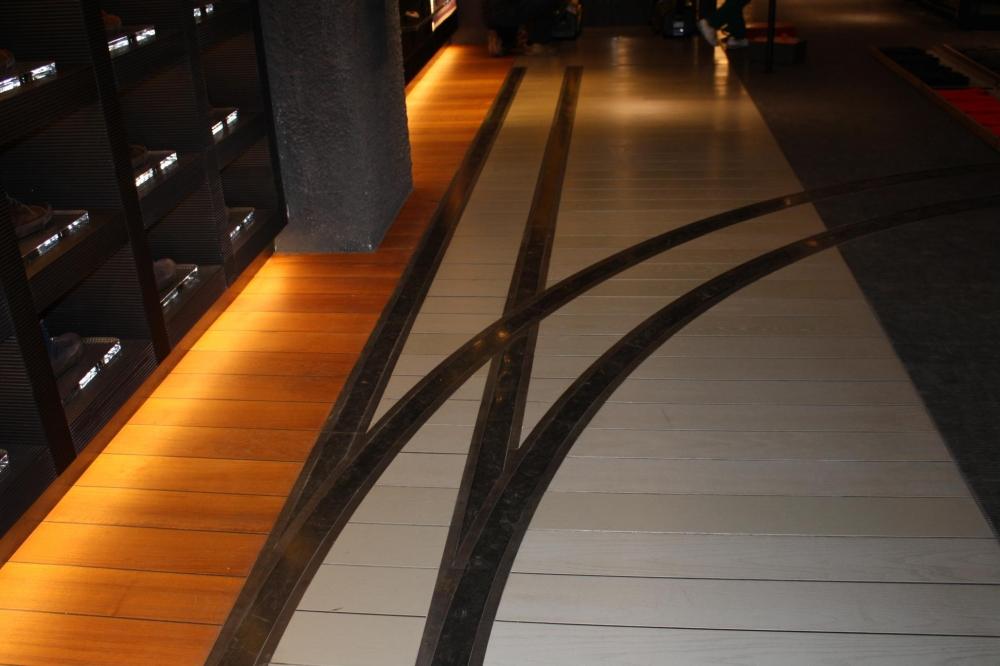 In questo progetto abbiamo realizzato i pavimenti del negozio Pirelli a Milano in TEAK BURMA in formato di plance posate a TOLDA di NAVE.
